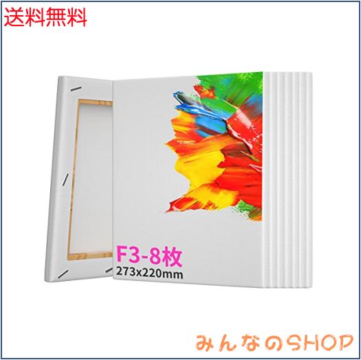 【商品仕様】 キャンバス F3サイズ:長さ約273mm、幅約220mm、 8個/セット。生地 : 綿化繊混紡 木枠 : ライト木枠 用途 :油彩・アクリル兼用