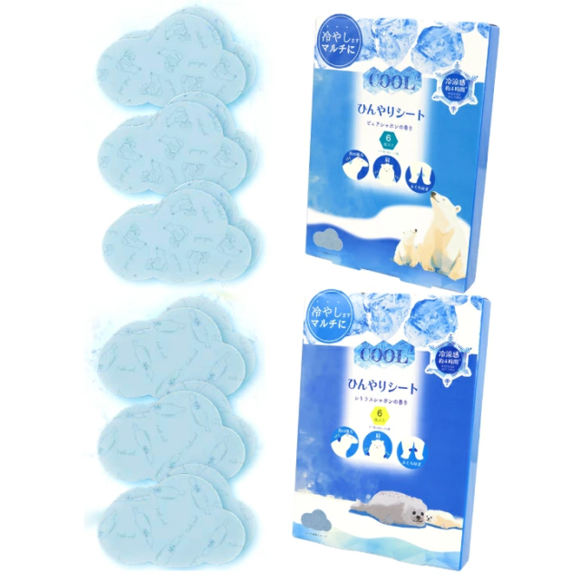クールシート【ひんやりシート 6P (しろくま/あざらし)】 6枚入り(1袋2枚入り×3袋)《 ピュアシャボンの香り/シトラスシャボンの香り》 首の後ろ 肩 ふくらはぎ 冷涼感 約4時間 使い捨てシート ほんやら堂