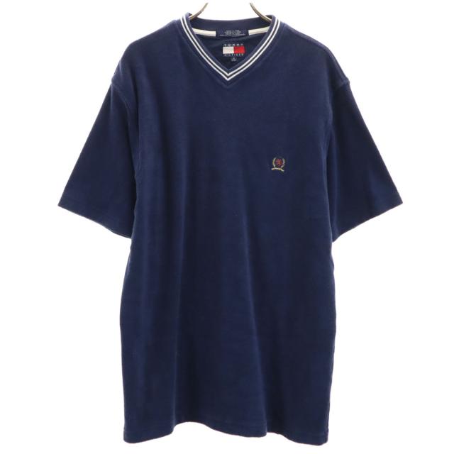 トミーヒルフィガー 90s オールド 半袖 パイル地 Vネック Tシャツ S ネイビー TOMMY HILFIGER メンズ