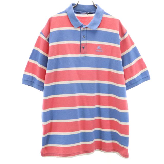 バーバリーズ 90s USA製 オールド ボーダー柄 半袖 ポロシャツ XL ブルー系 Burberrys 鹿の子 メンズ