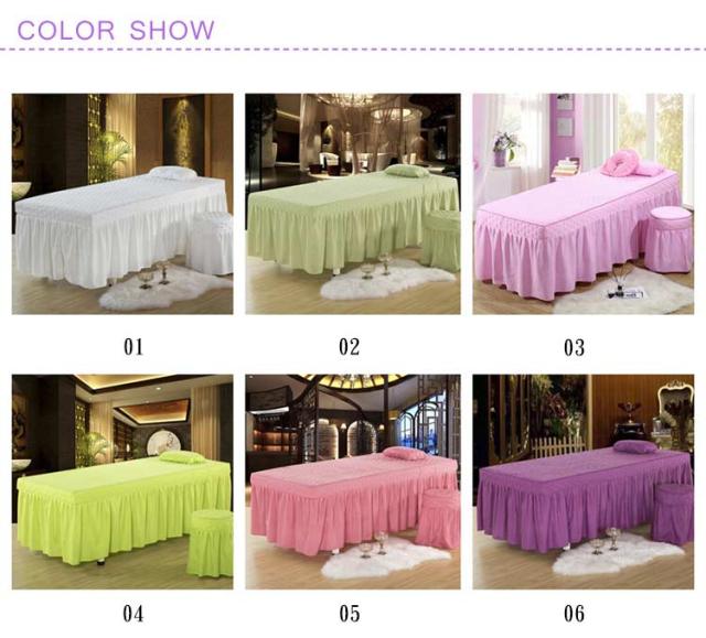 | フリル付きのスカートタイプ!マッサージベッドカバー。 SPAマッサージテーブルスカート美容ベッドカバーリネンバランスシート。無地なデザインで清潔感を演出します。 顔の呼吸穴と携帯電話用のサイドポケットが付いています。 洗濯機で洗えますのでいつでも清潔。 施術用品を隠せてスカートの後ろに隠されたセーブスペースを提供します。 柔らかい布の表面はあなたの顧客のための余分な快適感を提供する。 美容院、マッサージテーブル、ホテル、化粧用ベッド、病院など色々な場所を対応できます。 | |