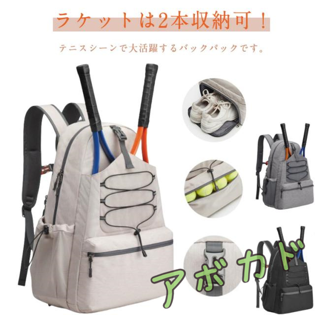 男女兼用 テニスバッグ スポーツバッグ シューズ入れ ラケット2本収納可 リュック 大容量 撥水 テニス バックパック テニスバック スポーツリュック テニスラケットバッグ ジュニア 中学生 高校生 大学生 大人