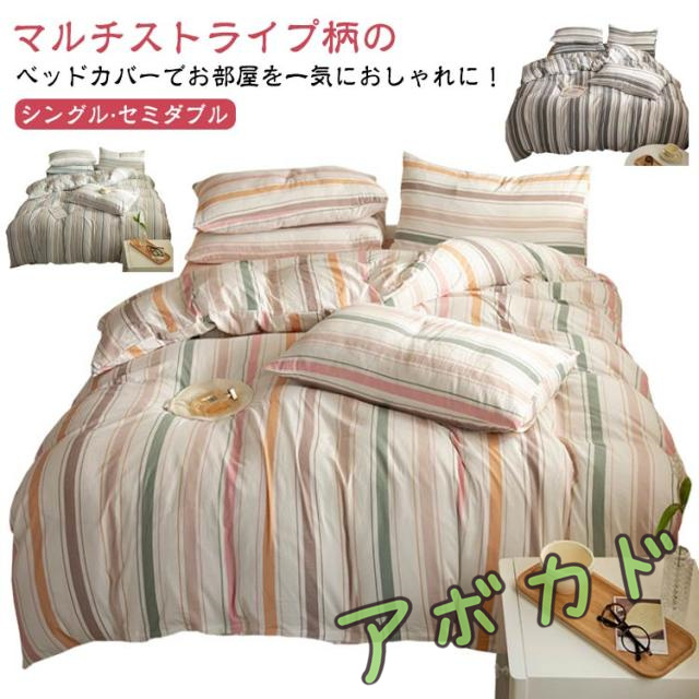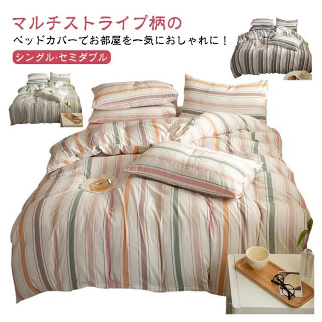 かわいい 3点セット 枕カバー シングル 丸洗い 掛け布団カバー ストライプ 綿100% 防ダニ フラットシーツ 寝具 寝具カバーセット 布団カバーセット セミダブル シーツセット 抗菌 防臭 洋式 北欧 おしゃれ マルチストライプ
