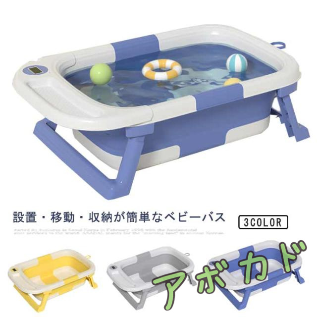 | ・設置・移動・収納が簡単なベビーバス ・温度表示設計で、寒い日でも温かい水温が確認できます。 ・バスタブの縁には石けんなどを置けるトレイ付き、フックに吊して衛生的に乾かせるなどうれしい工夫がされています。 ・小さくたためば収納にも持ち運びにもかさばりません。 | |