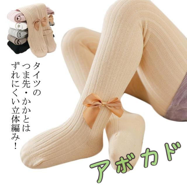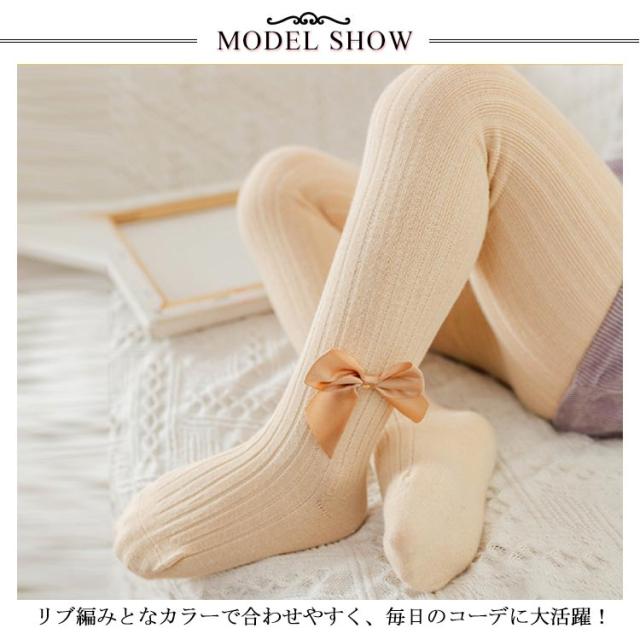 | タイツのつま先・かかとはずれにくい立体編み! リブ編みとなカラーで合わせやすく、毎日のコーデに大活躍! さりげなくある 足首サイドのワンポイントリボンが、とってもかわいい。 ウエストは平ゴム仕様、伸縮性バツグン&ヒップはマチ付きで身体に優しくフィット! 普段使いにもフォーマルにも使える!!寒い季節の通園・通学にもぴったり! | |