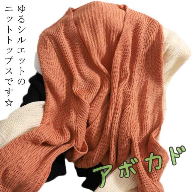 | ゆるシルエットのニットトップスです☆ vネックにデザインされて、小顔効果も着痩せ効果も期待される一枚! シンプルな無地のデザインでコーディネートもしやすい! | |