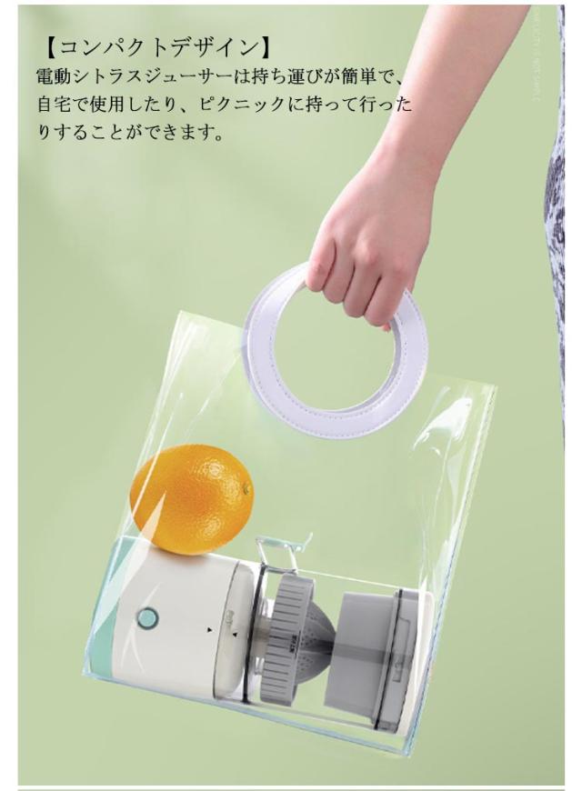 | 果物は半分に切るだけで、皮をむくことなくジュースを搾ることができます。高品質のABSおよびAS素材でできており、安全で健全です。 この電気オレンジスクイーザーは、低速システムを使用して果汁を抽出し、純粋なフルーツフレーバーを提供します。電動ジューサーでジュースをさらに美味しく! フレッシュジュースだけでなく、搾りカスもお料理やお菓子作りに使えるため、食材を無駄なくサステナブルに活用でき、環境にも優しいです。 電動シトラスジューサーは持ち運びが簡単で、自宅で使用したり、ピクニックに持って行ったりすることができます。 USBで充電できるので、バッテリー切れを気にせずにコードレスシトラスジューサーを屋外キャンプに持っていくと、いつでもどこでも美味しいジュースが楽しめます! ジューサーはいくつかの部品で組み立てられており、すべて取り外し可能で、簡単に分離して洗浄できます。 | |