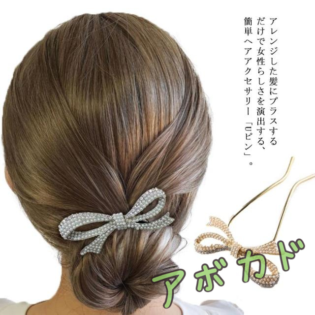 送料無料 Uピン パール 髪飾り ヘアアクセサリー リボン シルバー ゴールド キラキラ 簪 U字 かんざし ヘアピン 結婚式 入学式 卒業式 成人式 着物 浴衣 和装 衣装 ドレス まとめ髪 成人式