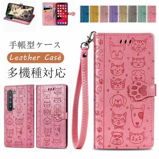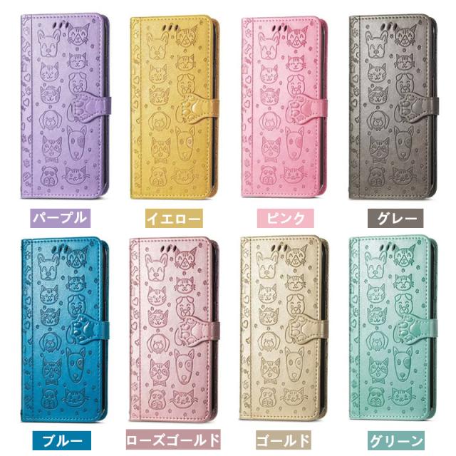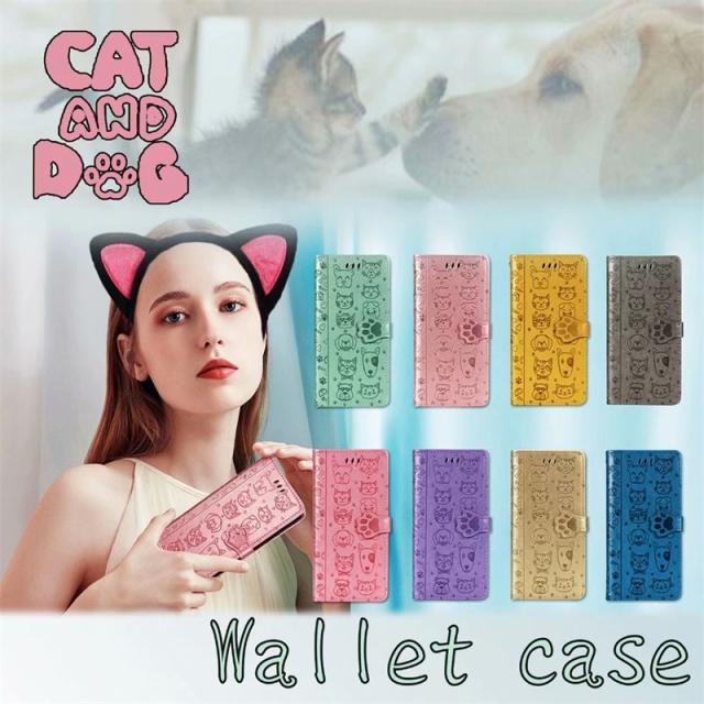 ○キュートなネコ&イヌ絵柄手帳型ケース全8色!。
