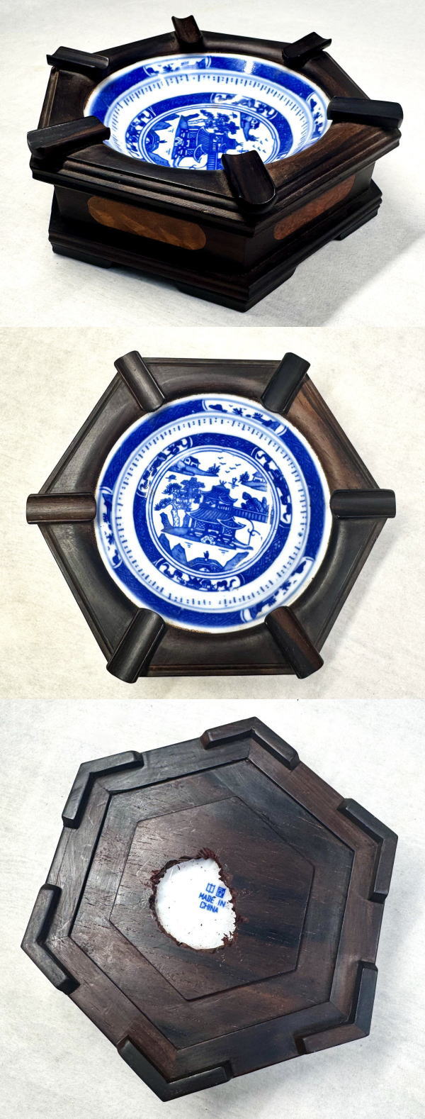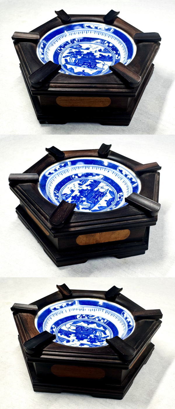 | 商 品 名 | 時代物 昭和レトロ 染付庭園紋皿 唐木灰皿 | ||||||