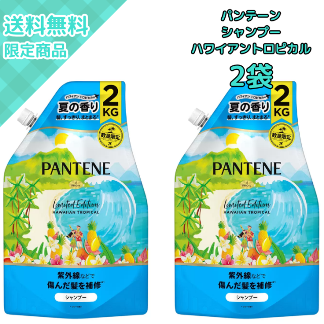2袋 Pantene パンテーン ダメージリペア ハワイエディション シャンプー 詰め替え用 2000ml 超特大サイズ 夏限定のトロピカルフルーティーな香り PRO?V処方(パンテノール浸透性保湿)紫外線ダメージ補修 サラつや髪へ 家族用 お風呂ストック用 業務用 コストコ販売モデル