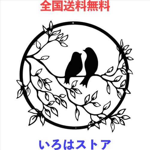 JYCD ウォールデコ アイアン ラウンド 金属の家の装飾の壁飾り黒の木の壁の芸術枝に形作られた鳥ウォールデコレーション 壁掛け ウォール
