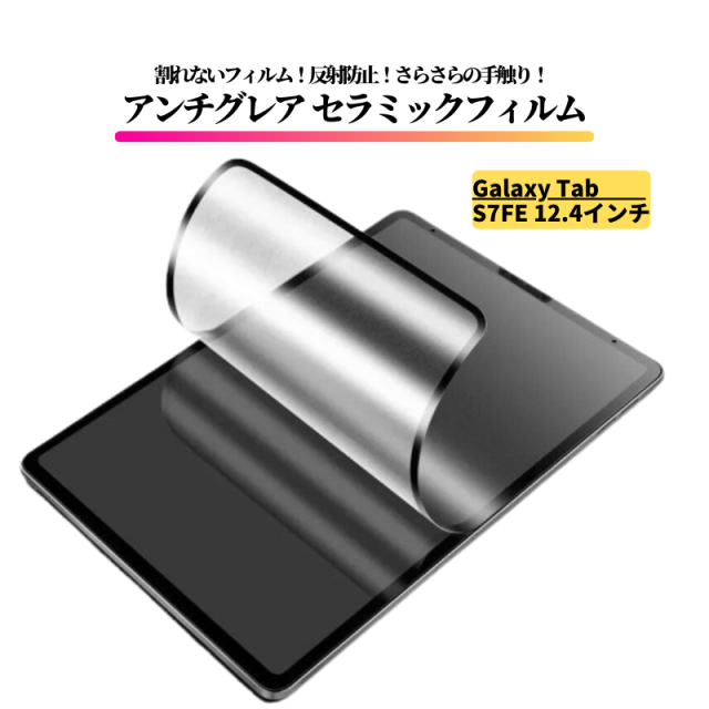 Galaxy Tab S7FE 12.4インチ アンチグレア セラミック フィルム 割れない 保護フィルム タブレット 非光沢 マット 反射防止 GalaxyTabS7FE