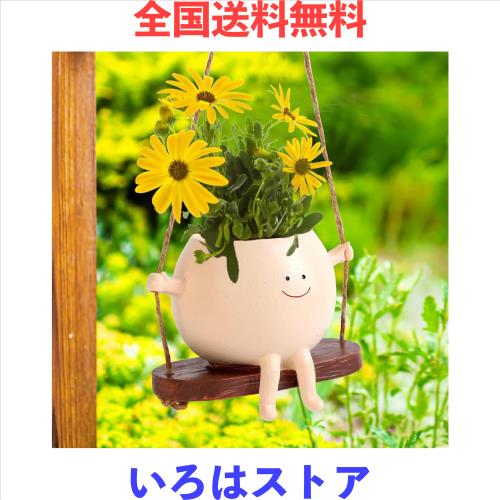 かわいいデザイン:お気に入りの植物をスイングチェアの頭のフラワーポットに植えると、そのヘッドフラワーポットは笑顔の子どものように見えます。彼らがロッキングチェアを持ってブランコを揺らしているのを見ていると、心身ともにリラックスしているような気がします。先生への感謝や母の日などの機会に最適です。