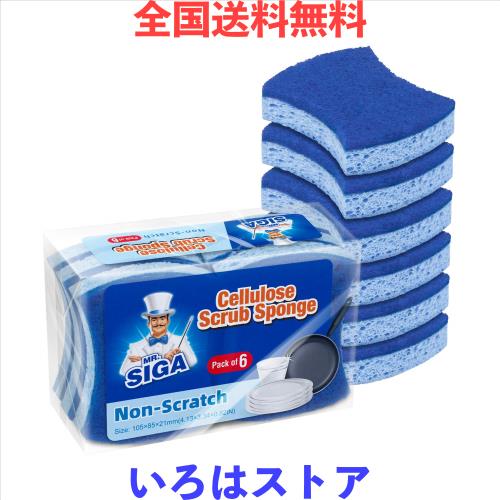 ◆商品名:MR.SIGA 傷をつけないキッチン用両面スポンジ 12個入り (6個x2パック) セルローススポンジ 洗剤不要