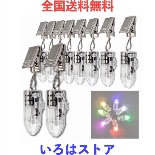 【多機能LEDバルブ】10個セット 高輝度豆電球(電池交換可能)、発光色:カラフルな色、サイズ:約3.5*1.6*1.2cm、梱包内容:10×LEDバルブ(電池付属)、10×フッククリップ。