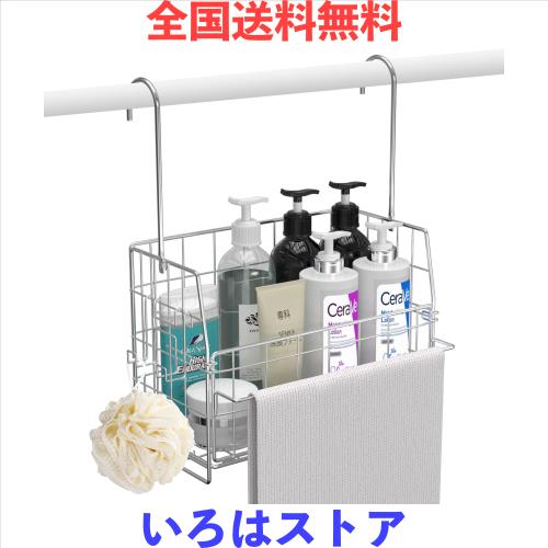 浴室 ラック 吊り下げ 大容量 シャンプーラック ステンレス タオルハンガー/小物フック付き お風呂 ラック 洗面所 バスルーム 風呂場 組