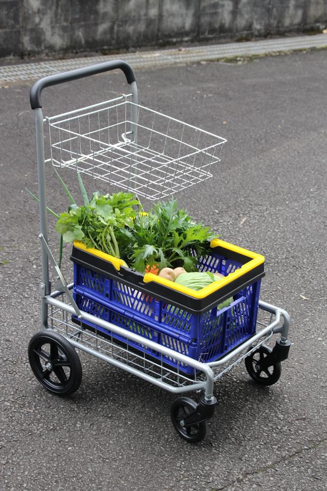 ●カゴ2段式なので、物がたくさん載せられる。大量にお買い物をした時にも移動ラクラク! ●上段は小物を、下段は重い荷物を入れられて便利 ●上段カゴはぶら下げることができ、その分スペースを開けられるので、下段カゴに大きな荷物を入れることも可能。家電を買った時でも安心できる設計 ●折り畳み収納できるカゴ付きで更に便利に。お買い物の際にマイカゴとしてご利用可能 ●前輪は360°回転可能で、すいすい歩ける。方向転換も自由自在 ●後輪は大き目サイズで安定感抜群 ●カート自体の折り畳みもできるので、スペースのないご家庭でも大活躍