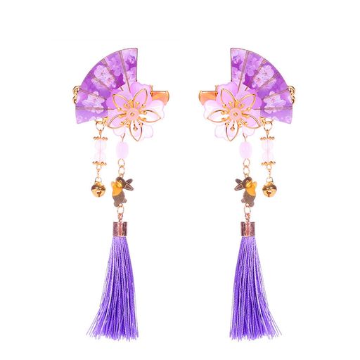 扇子 髪飾り タッセル 扇 花 ヘアクリップ 中華風 漢服 浴衣 和装 ヘアアクセサリー ヘッドドレス 子供髪飾り 入学式 卒業式 七五三 (紫)