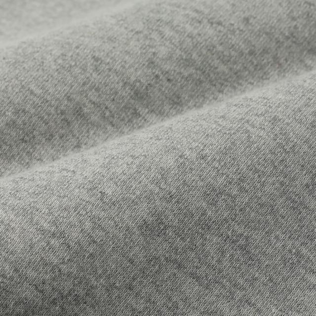 旧式のアズマ編機を使用する事で、ヴィンテージのように中糸が表に見える独特な表面に仕上がった素材です。糸番手を通常より細くしており、裏を起毛する事で薄手ながらも膨らみのある裏毛に仕上がっています。 Color