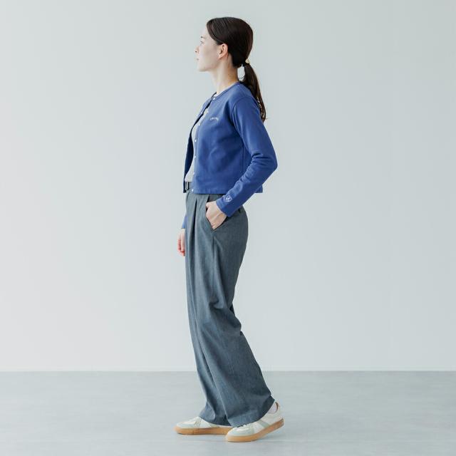 腰回りももたつかず、スッキリとした印象を与えるため、どんなボトムスとも相性抜群です。
