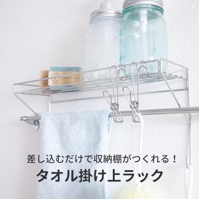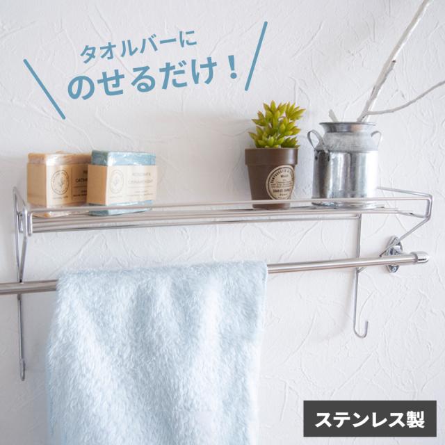 お風呂 ラック そのまま取付けられるタオルバーシェルフ | 棚 シェルフ バスラック 収納 差し込むだけ 置くだけ 浮かせる ステンレス 簡単設置 タオル掛け タオルバー お風呂 浴室 洗面所 トイレ ボトルラック 小物置き ドライヤー収納