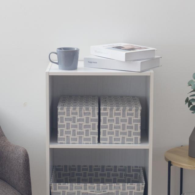 一般的なカラーボックス半分にぴったり収まるサイズです。カラーボックス1段に2個並べて入ります。