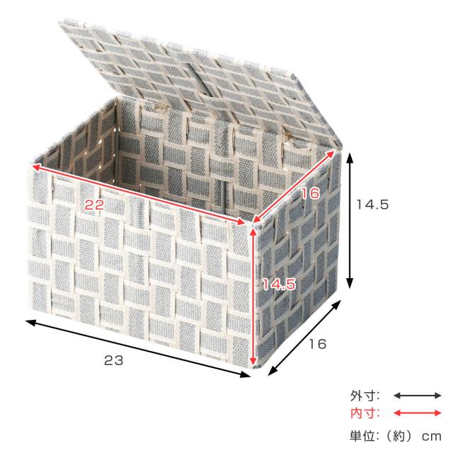 | サイズ | 外寸:約 幅23×奥行16×高さ14.5(cm) 内寸:約 幅22×奥行15×高さ14(cm) |