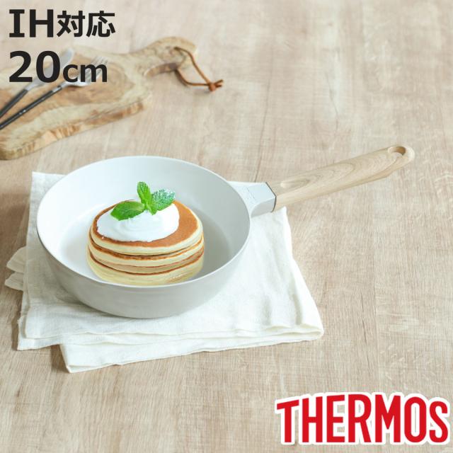 サーモス フライパン 20cm IH対応 セラプロテクト セラミック ( THERMOS ガス火対応 片手鍋 炒め鍋 セラミック加工 軽い 深型 軽量 丈夫 長持ち PFOA&PFOSフリー セラプロテクトコート グレージュ 木目調ハンドル ノンスティック )