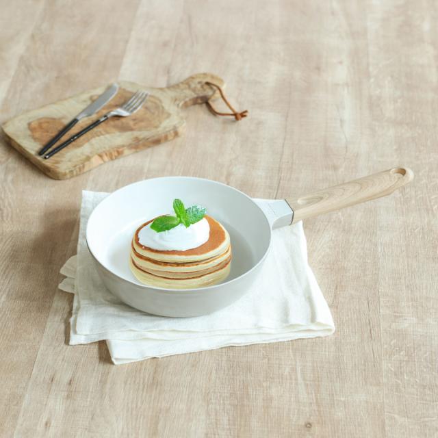 コンパクトな20cmサイズは、1〜2人分の調理にちょうどよく、朝食やお弁当作りにぴったりです。ホットケーキや目玉焼き、ちょっとした炒め物など、気軽に使えるサイズです。