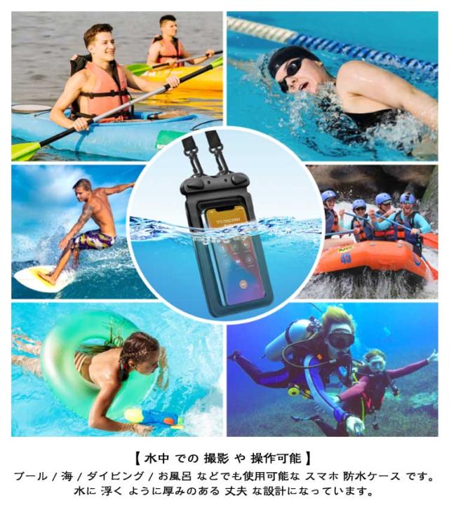 | 【2枚セット】 【便利な 2way 仕様 小物収納ポケット付 】 スマホ防水ケースと小物入れ が一体になっていて、 小銭やコイン を同時に持ち歩けます。 コインケースとしても利用可です。 【 完全防水 IPX8 】 防水等級 は最高ランクの IPX8 。 携帯防水ケース や 防水ポーチ / 携帯防水カバー / 防水バック として便利に持ち運び可能です。 【 水中 での 撮影 や 操作可能 】 プール / 海 / ダイビング / お風呂 などでも使用可能な スマホ 防水ケース です。 水に 浮く ように厚みのある 丈夫 な設計になっています。 【 FACE ID や通話にも対応】 防水 スマホケース をつけたまま通話 や 顔認証 が可能です。首掛け やショルダー 掛けに対応した ストラップ が付属しています。 【 6.7インチまでの スマホ 対応】 で最大 6.7インチまで対応( 使用しているスマホケースの影響あり) iPhoneや各種 Android ( アンドロイド ) の端末に対応しています。 | |