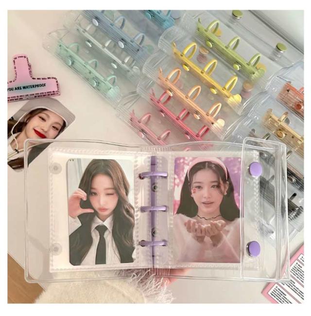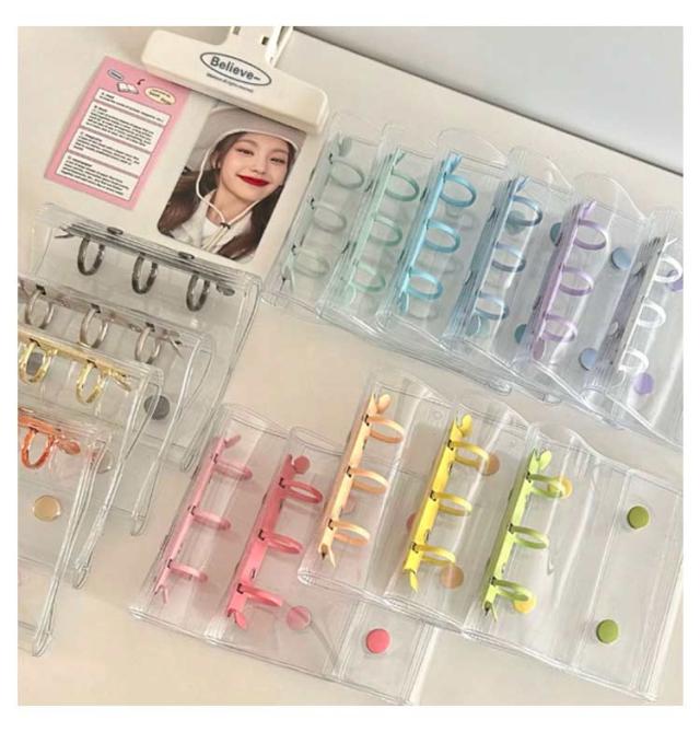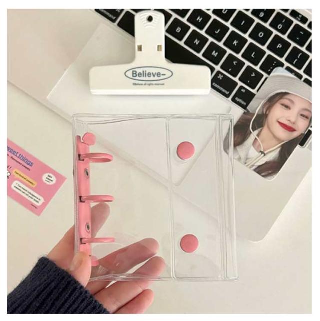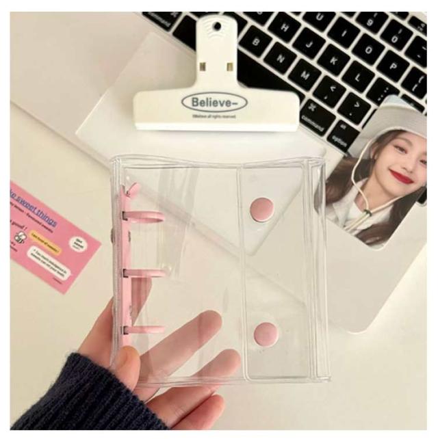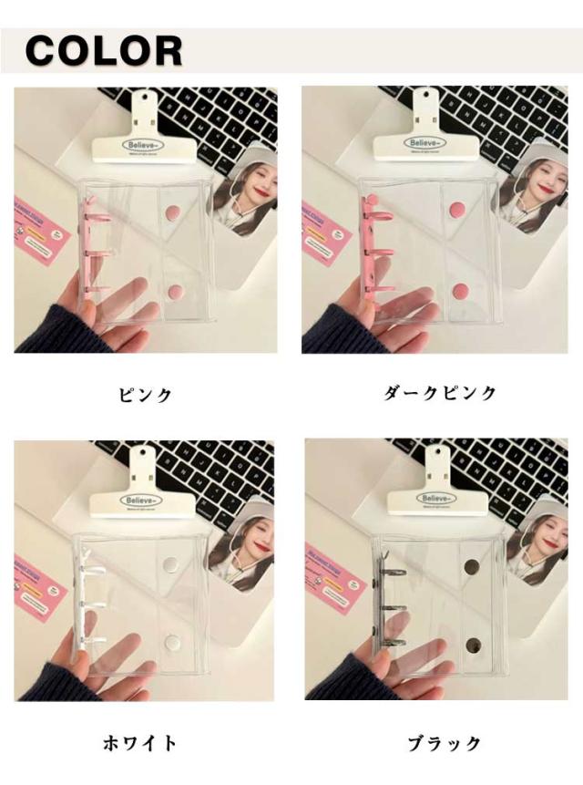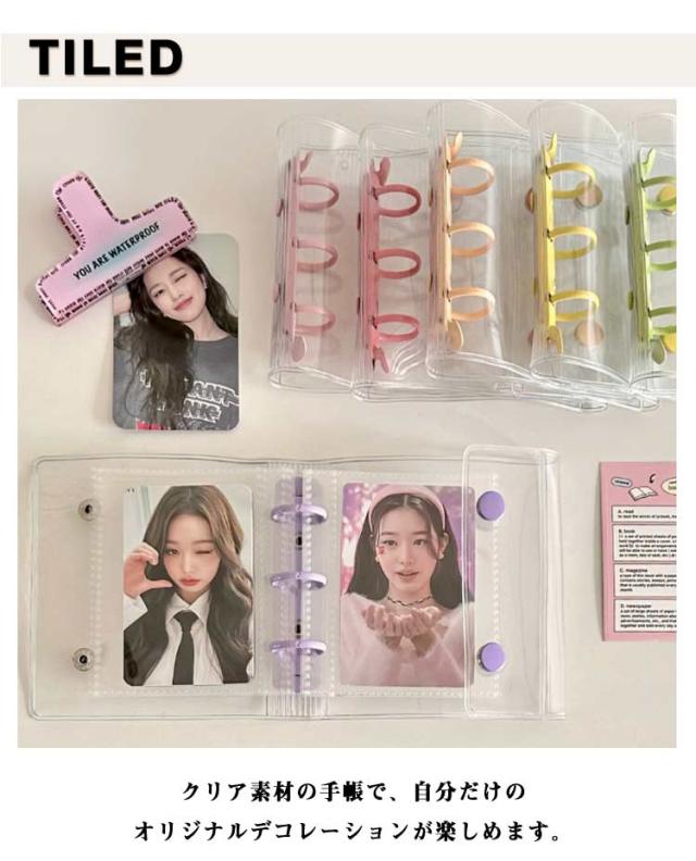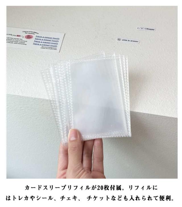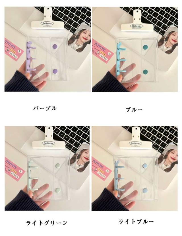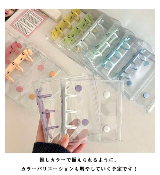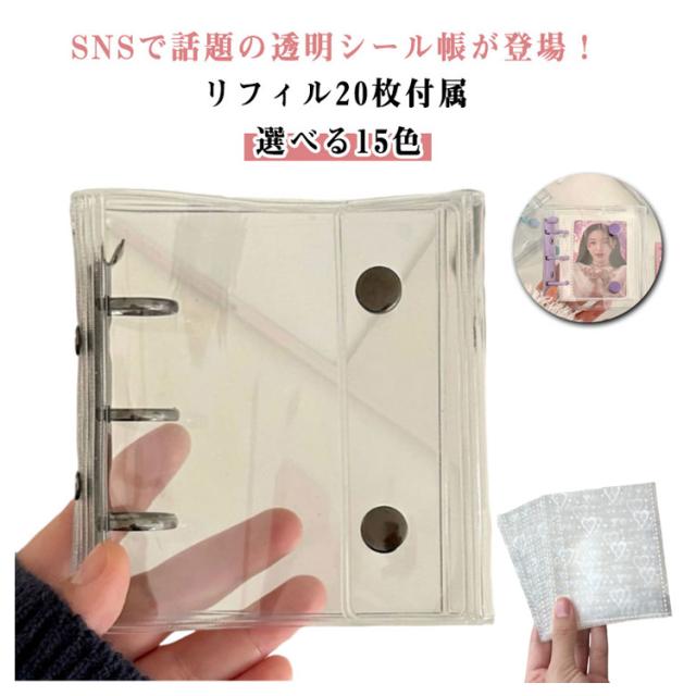 シール帳 透明 シール クリア バインダー 【リフィル20枚付属】 透明 シール手帳 ボタン付き 透明バインダー 3穴 コンパクト手帳 カスタマイズ手帳 手帳型 アクスタケース トレカ収納 推し カラー ファイル 推し活グッズ 持ち運び オタ活グッズ かわいい PVC 送料無料