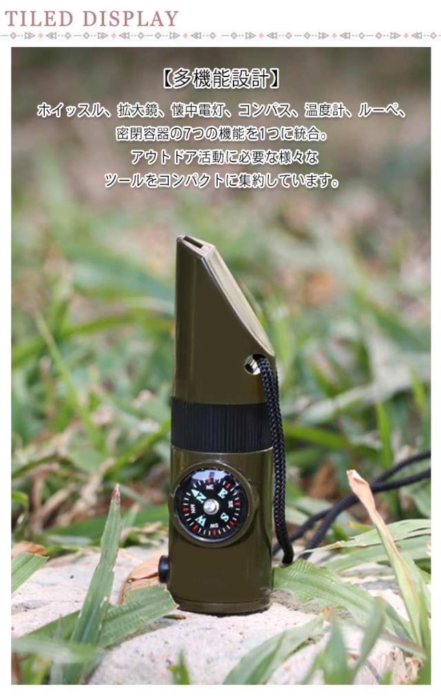| 【多機能設計】 ホイッスル、拡大鏡、懐中電灯、コンパス、温度計、ルーペ、密閉容器の7つの機能を1つに統合。アウトドア活動に必要な様々なツールをコンパクトに集約しています。 【高性能ホイッスル】 軽く吹くだけで、大きく鋭い音を発します。緊急時の注意喚起に最適で、騒がしい環境でも十分な音量と透過性を持ち、救助要請に効果的です。 【アウトドア活動の強力サポート】 コンパスで方向を確認し、ホイッスルで救助を求め、懐中電灯で暗闇を照らすなど、野外での様々な状況に対応できます。 【携帯性と利便性】 ネックストラップ付きで、首にかけたり、手首に巻いたり、バックパックに取り付けたりと、様々な携帯方法に対応。必要な時にすぐ使用できます。 【幅広い用途】 スポーツ(サッカー、バスケットボール、バレーボール、バドミントン、空手、柔道、剣道、テコンドーなど)での使用はもちろん、地震や火災などの災害訓練、防犯対策、緊急時の準備など、多岐にわたる場面で活用できます。 | |