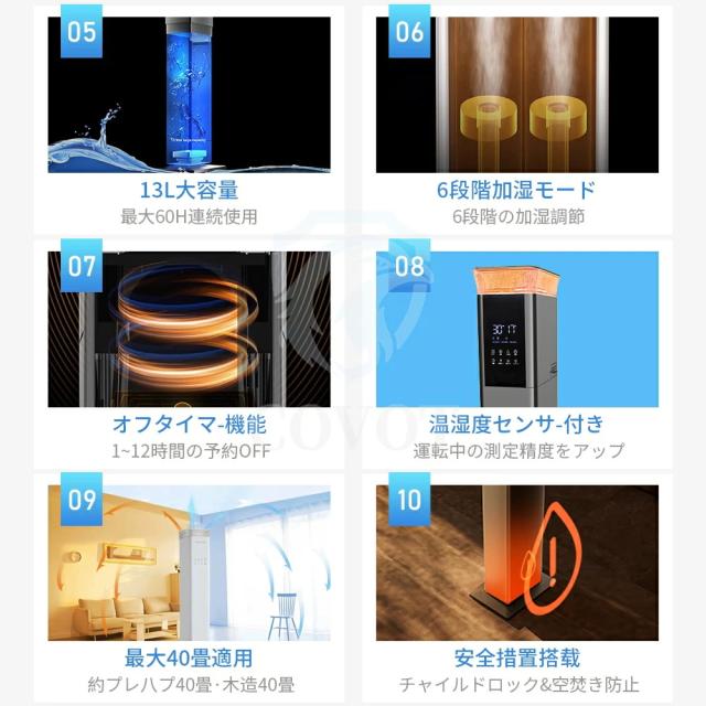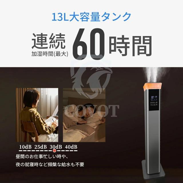 加湿器 加湿機 加熱式 スチーム式 超音波式 ハイブリッド式 空気清浄 40畳 大容量 13L 大型 タワー型 おしゃれ 除菌 自動湿度調節 空焚き防止 上部給水 3段階調節 噴霧量530ML/H 業務用 寝室 静音 省エネ 人気のアロマ オシャレランキング おすすめ