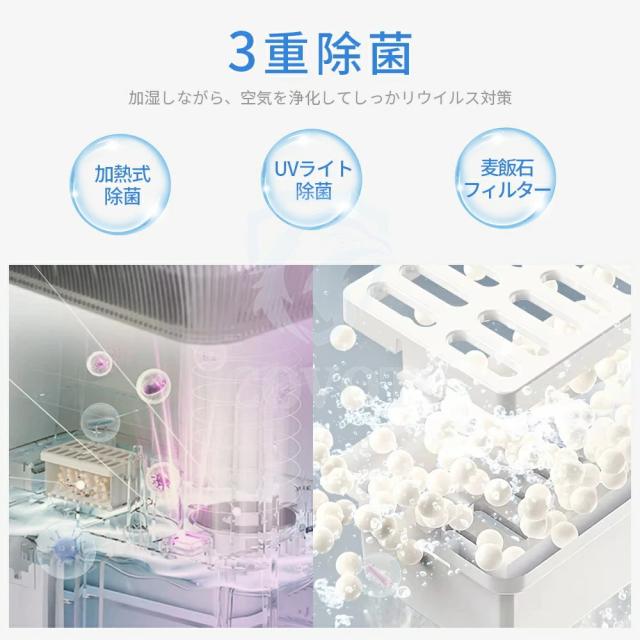 【便利な機能を搭載】 ◆湿度自動調整機能:湿度を45%〜95%まで設定できます。設定した湿度を超えると自動停止。設定した湿度より低くなると、再起動して加湿を行います。