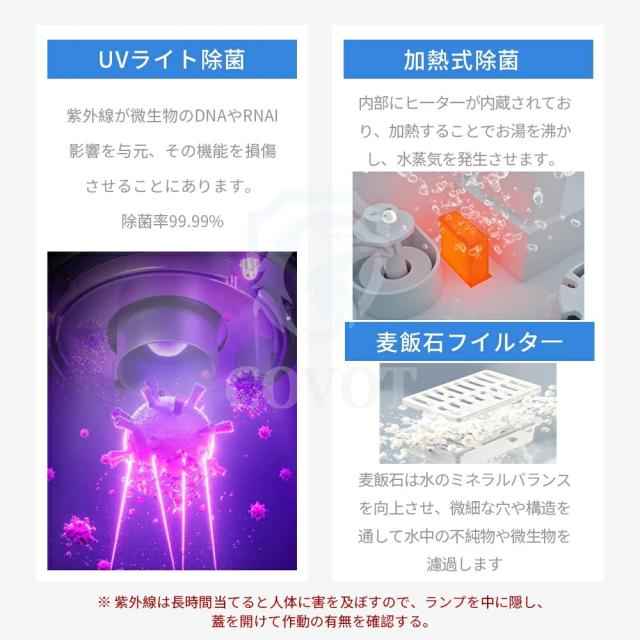 除菌機能 UV除菌機能を本体に内蔵。さらに100℃の高温でタンク内の水を徹底的に除菌します。