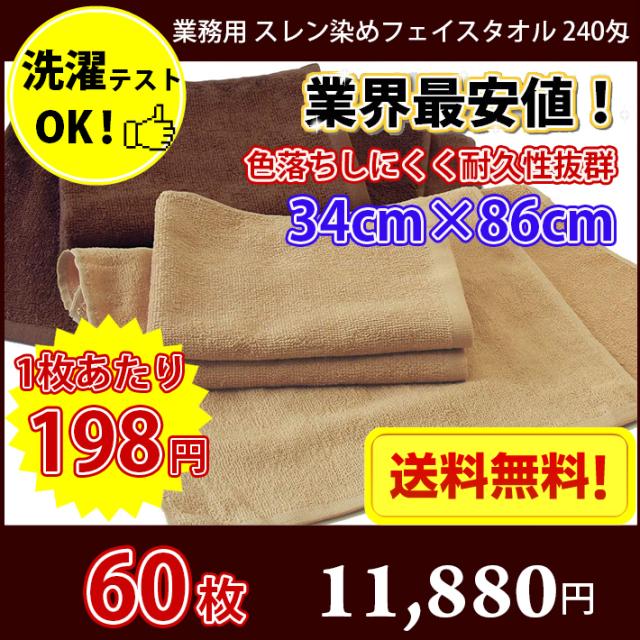 【送料無料】1枚あたり198円 同色60枚セット スレン染め フェイスタオル 240匁 モカ ダークブラウン 34cm×86cm / 業務用 長持ちタオル