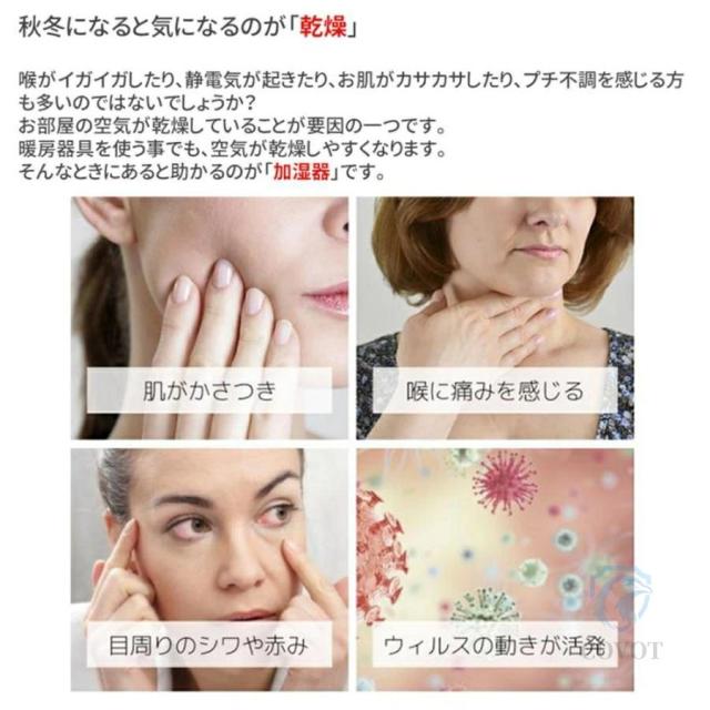 【7】室内湿度をコントロール:設定した湿度超えると、加湿を自動停止、加湿過ぎ防止、設定した湿度復帰すると、加湿を自動起動します。