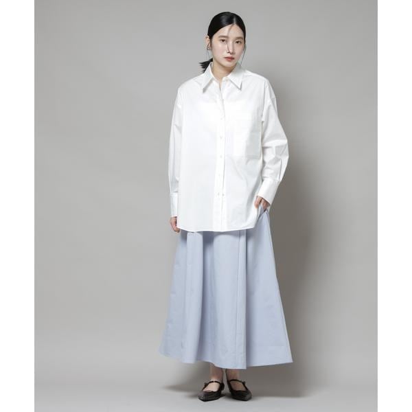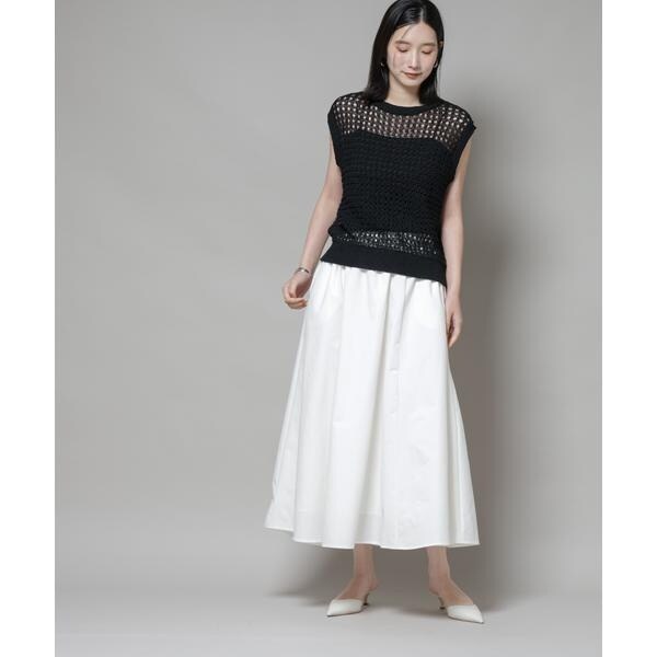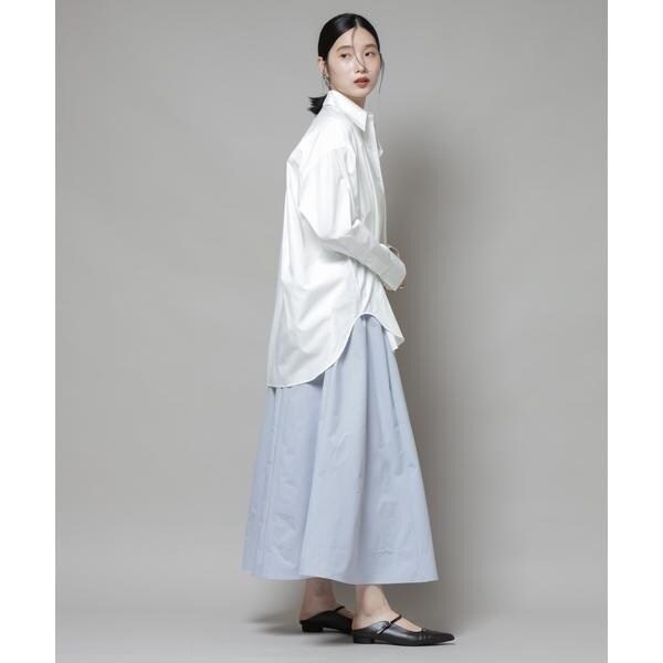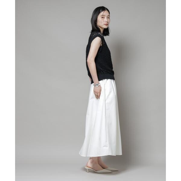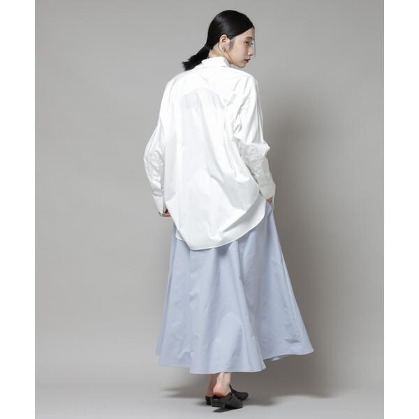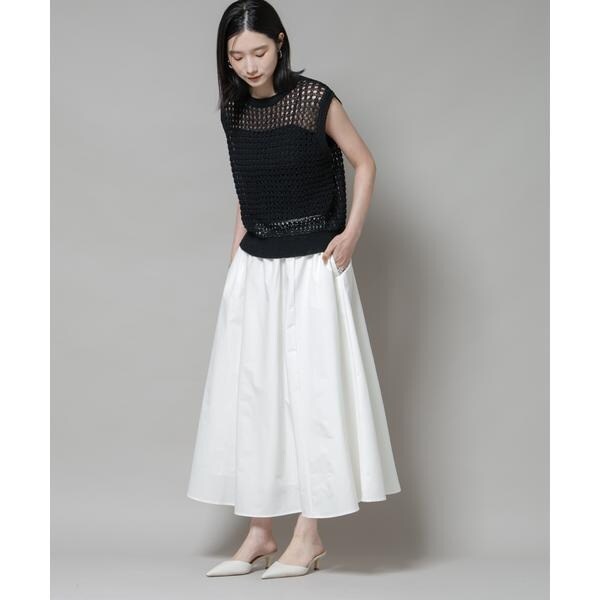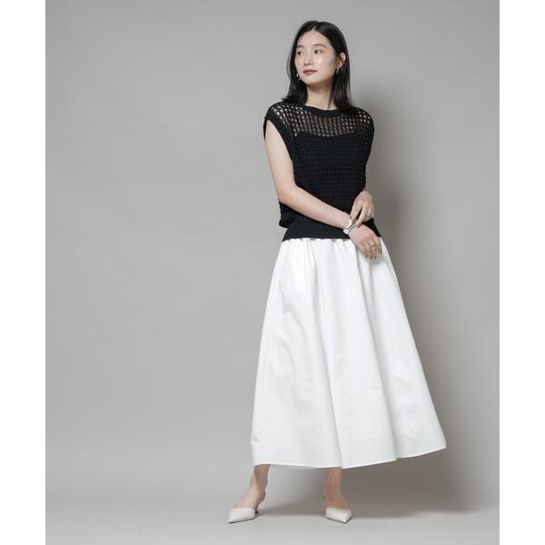 撥水加工が嬉しいロングシーズンで活躍するボリュームスカート。撥水加工を施した機能を備えており、天候を気にせずに着用できる頼れるアイテム。腰まわりに程よくフィットするデザインで、トップスをインしてももたつかず、バランスよく着こなせる一枚です。