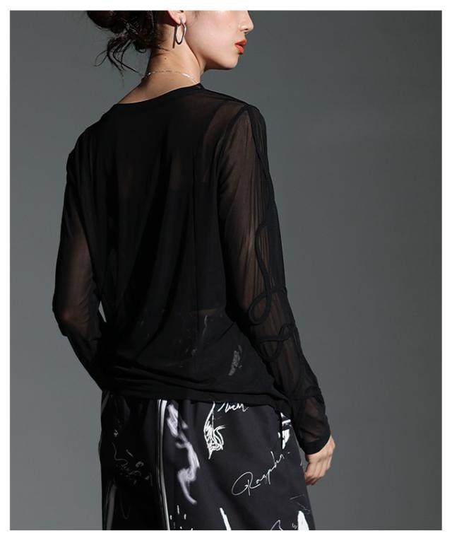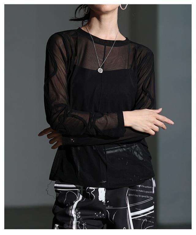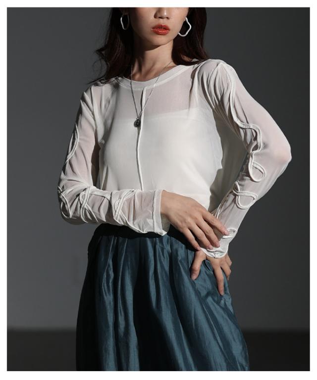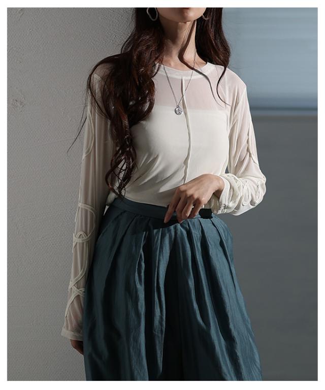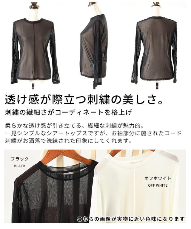春新作 ニュアンス溢れるコード刺繍シアートップス レディース ファッション トップス カットソー ブラック オフホワイト 秋 大人可愛い 20代 30代 40代 レディースファッション カジュアル 体型カバー おしゃれ きれいめ ママ サワアラモード sawaalamode mode-10060