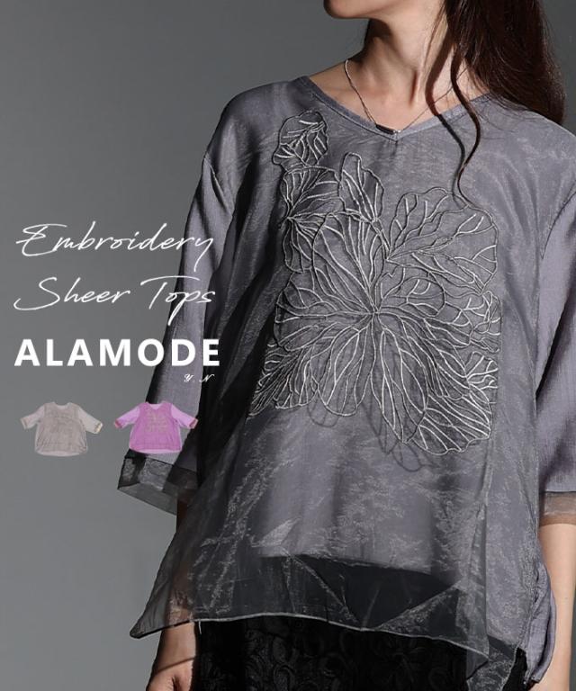春新作 上品な存在感を醸し出すフラワー刺繍×シアーレイヤードブラウス レディース ファッション トップス ブラウス 花 秋服 大人可愛い 20代 30代 40代 レディースファッション カジュアル 体型カバー おしゃれ きれいめ ママ サワアラモード sawaalamode mode-10054
