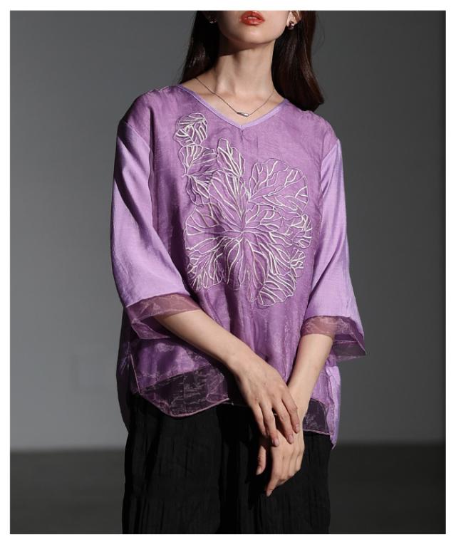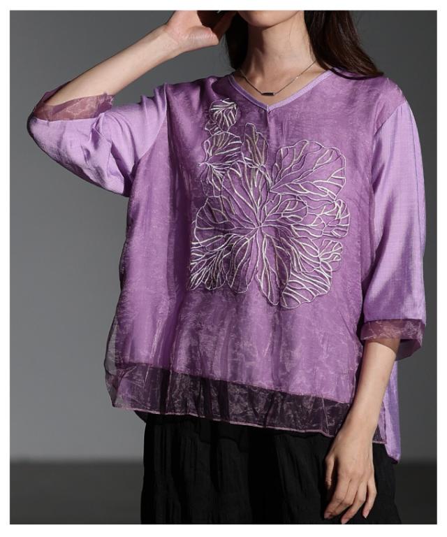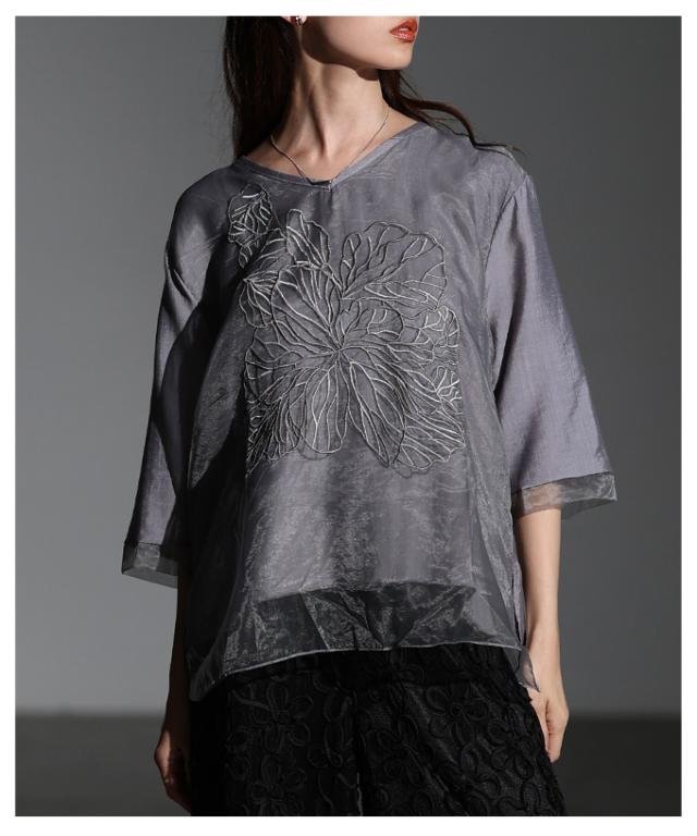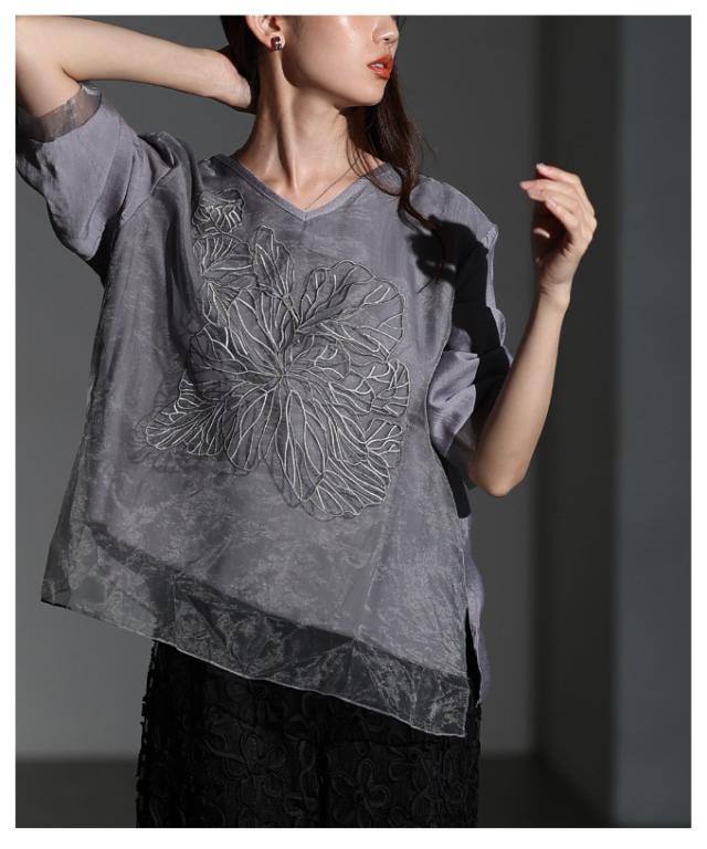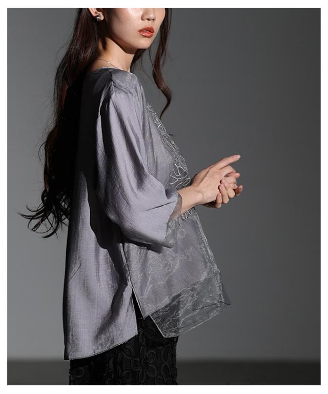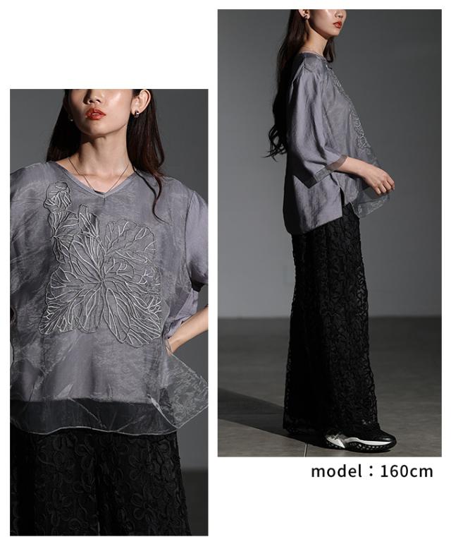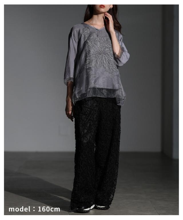 商品名: フラワー刺繍×シアーレイヤードブラウス