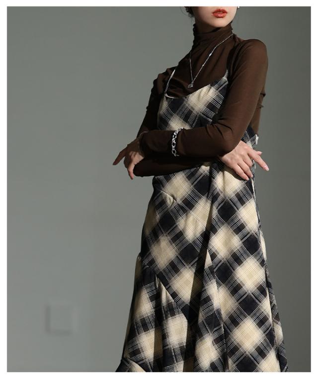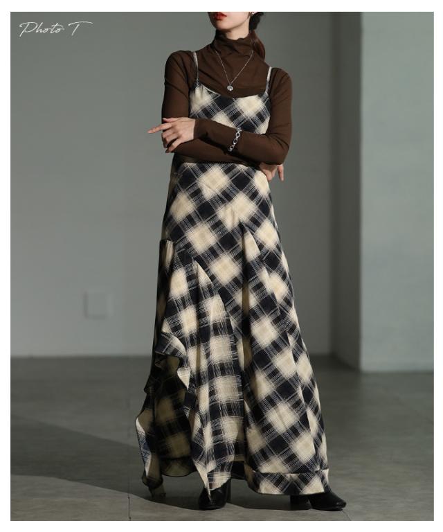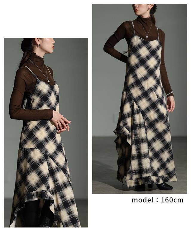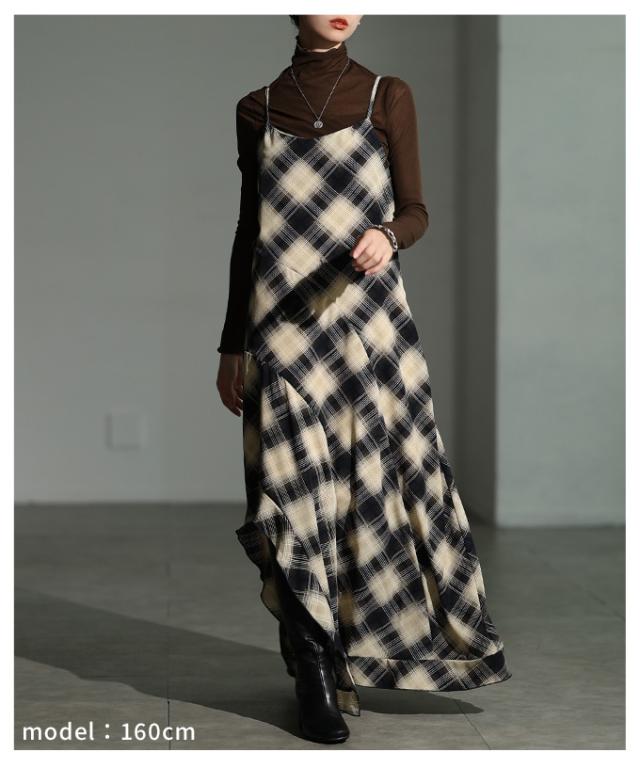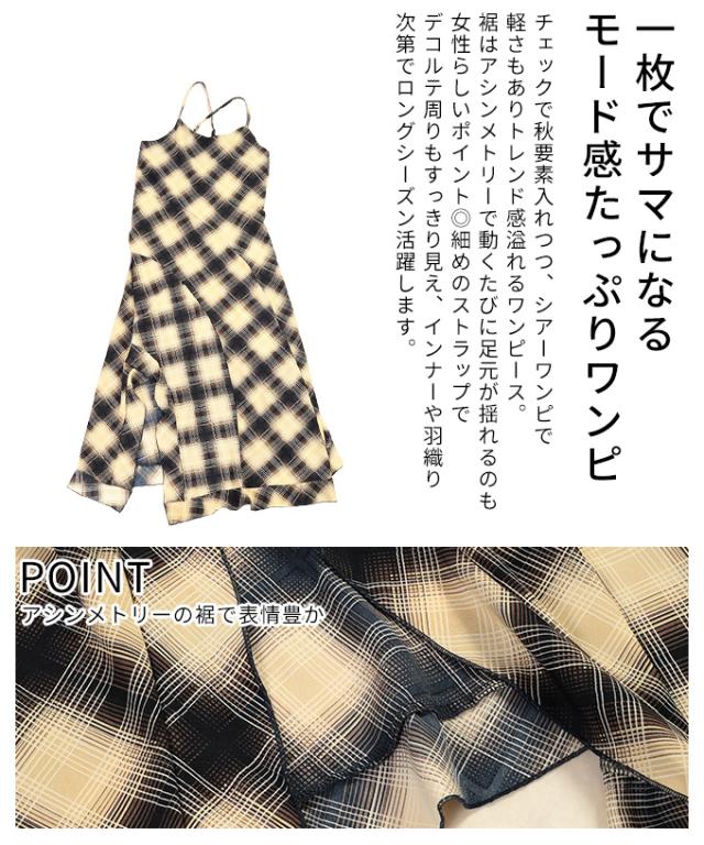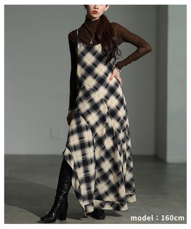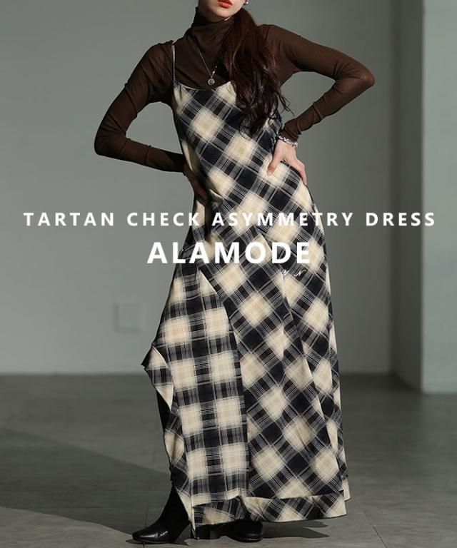 春新作 1枚でサマになるタータンチェック柄アシンメトリーフレアキャミワンピース レディース ファッション ワンピース 秋服 大人可愛い 20代 30代 40代 レディースファッション カジュアル 体型カバー おしゃれ きれいめ ママ サワアラモード sawaalamode mode-10052
