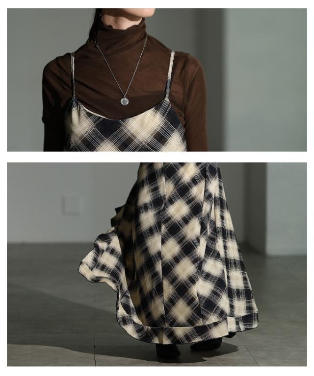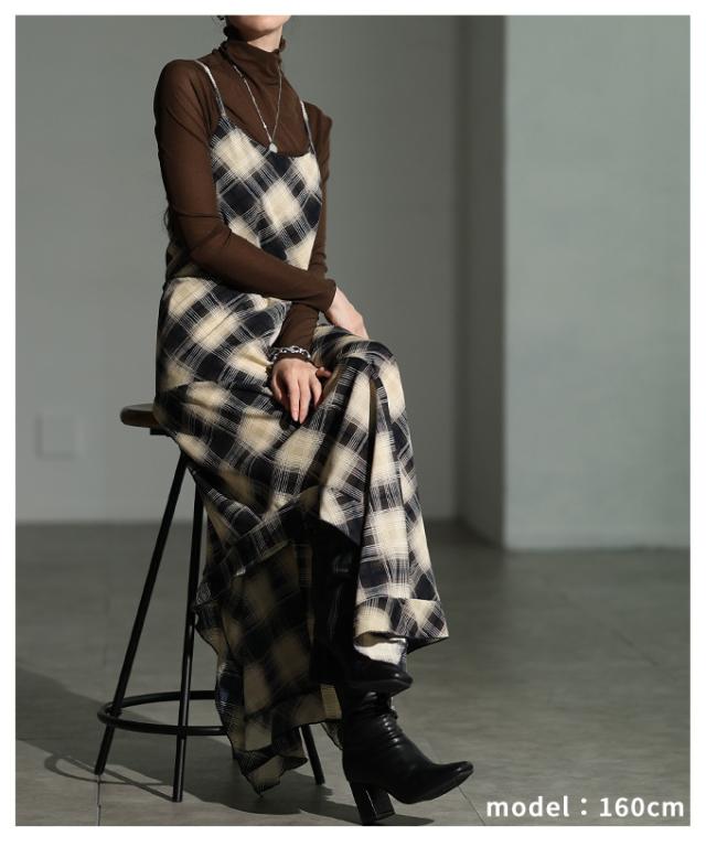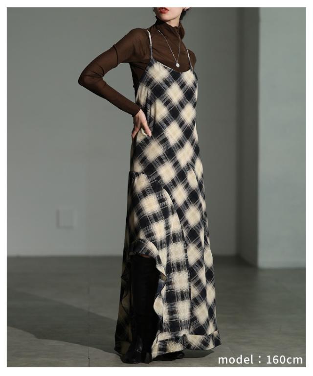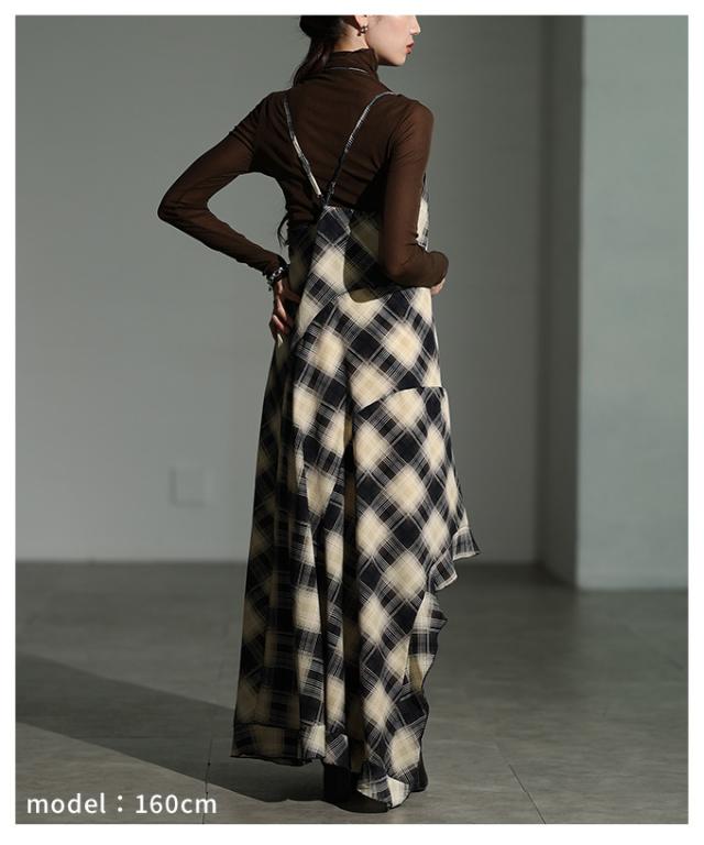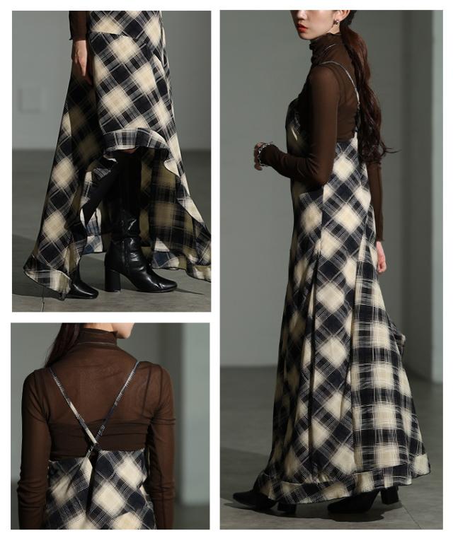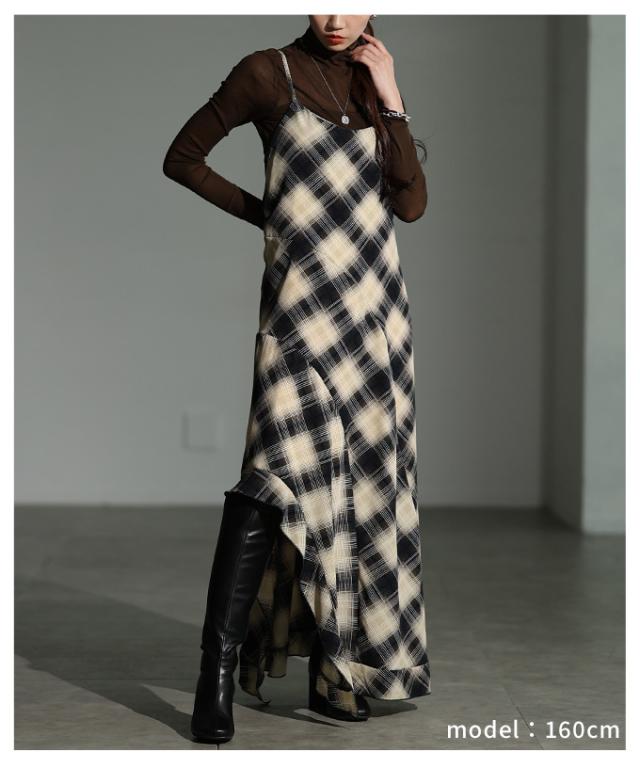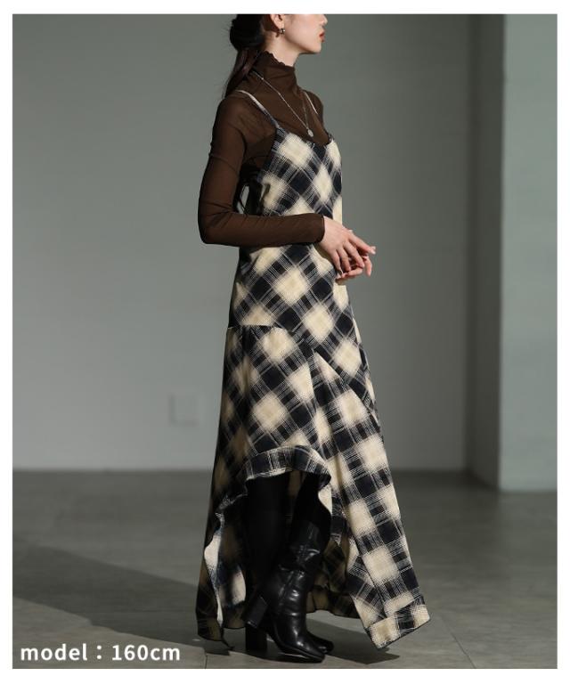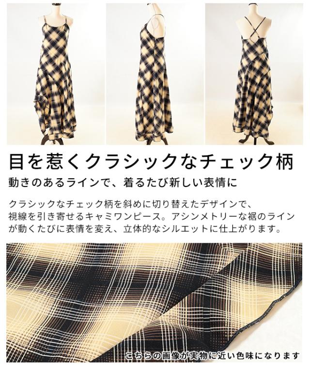 商品名: チェック柄アシンメトリーフレアキャミワンピース