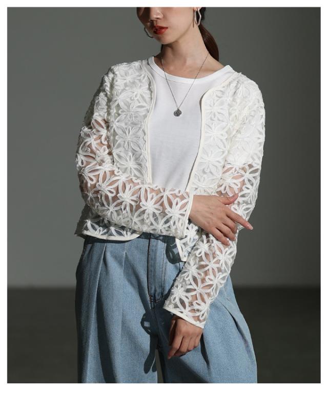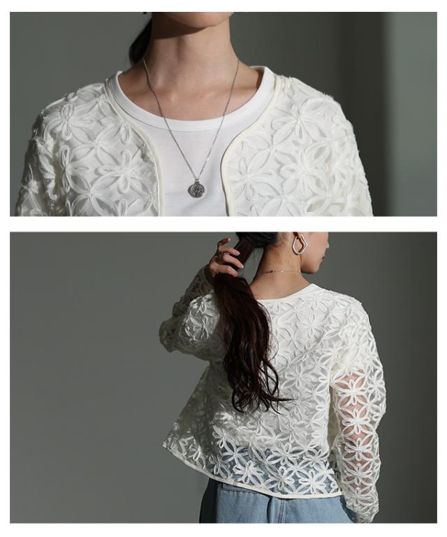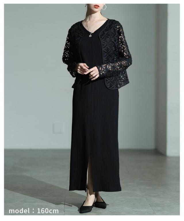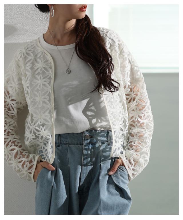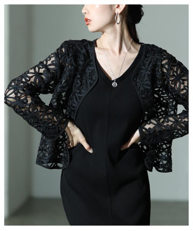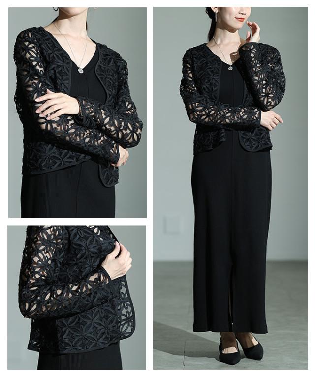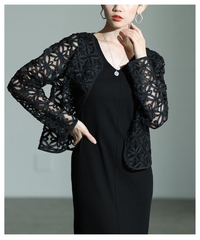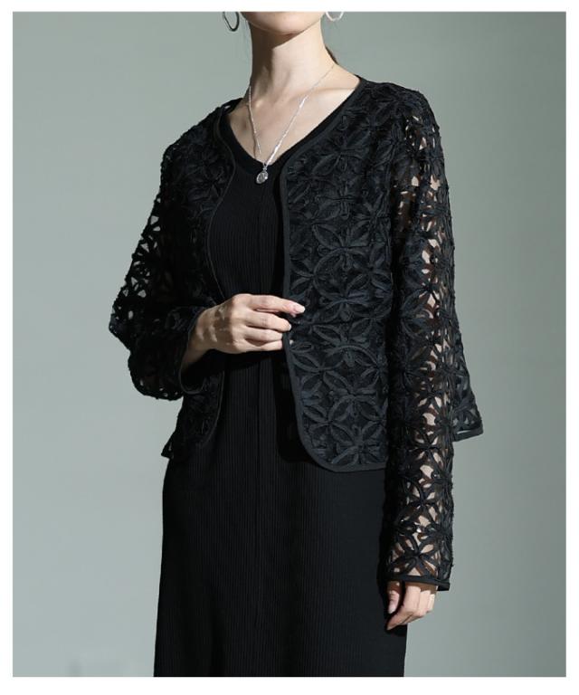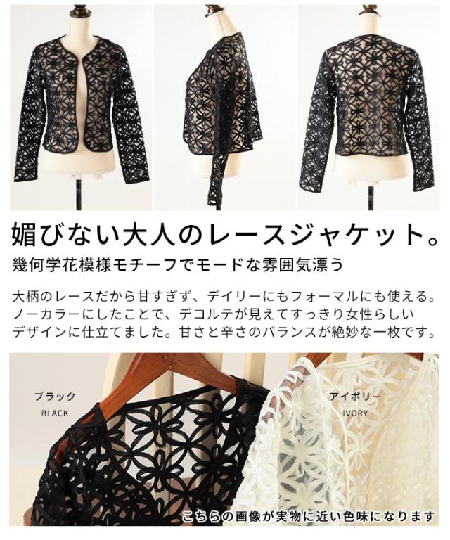 春新作 媚びない大人のコードレースノーカラージャケット レディース ファッション アウター ジャケット 羽織り ブラック 秋 大人可愛い 20代 30代 40代 レディースファッション カジュアル 体型カバー おしゃれ きれいめ ママ サワアラモード sawaalamode almam-198454