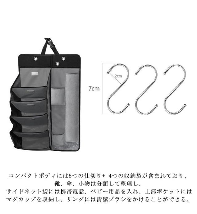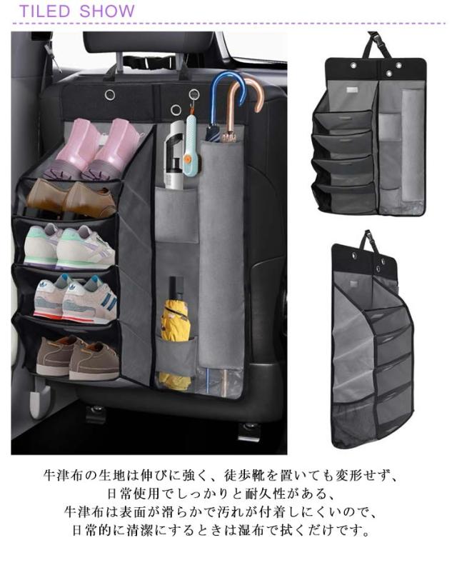 | 自動車は靴棚、傘カバーを多用する。 車内空間を有効に活用するために設計されており、下駄箱、傘筒、棚として使用でき、傘差込口に排水孔を設けて清潔に保つ。 車用マルチシューズラック&傘入れは土禁車にフィットするように特別に設計されており、車内のスペースを有効に活用できます。 傘差し部には水抜き穴もあり、清潔に車用収納ラックを保てます。ウェットスポンジまたはウェットタオルで簡単にきれいにする。 ヘッドレストに取り付けるだけなので、大型車から小型車まで幅広い車種に対応。 工具は一切必要なし!取付時間は僅か10 秒間!ベルトをヘッドレストに通し、マジックテープをシートバックに貼り付けて装着済み! コンパクトボディには5つの仕切り+ 4つの収納袋が含まれており、靴、傘、小物は分類して整理し、 サイドネット袋には携帯電話、ベビー用品を入れ、上部ポケットにはマグカップを収納し、リングには清潔ブラシをかけることができる。 牛津布の生地は伸びに強く、徒歩靴を置いても変形せず、日常使用でしっかりと耐久性がある、 牛津布は表面が滑らかで汚れが付着しにくいので、日常的に清潔にするときは湿布で拭くだけです。 | |
