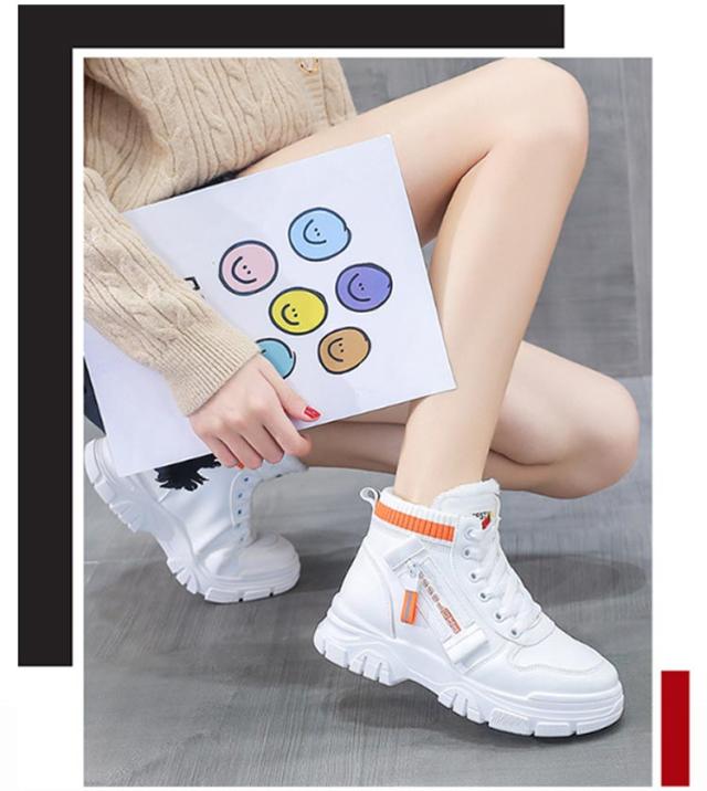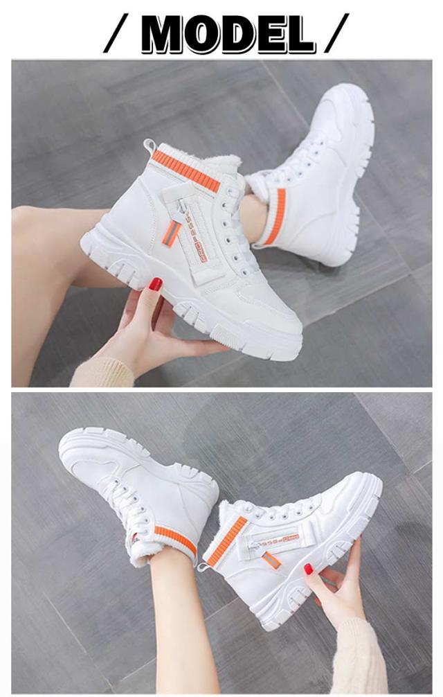 ハイカットスニーカー レディースシューズ 裏起毛 ハイカットスニーカー 厚底スニーカー スニーカー ハイカット 美脚 履きやすい レディース シューズ 滑り止め 厚底 大きいサイズ シンプル 耐摩耗 シューズ 大人 女性 春秋 冬 あったか 脚長効果