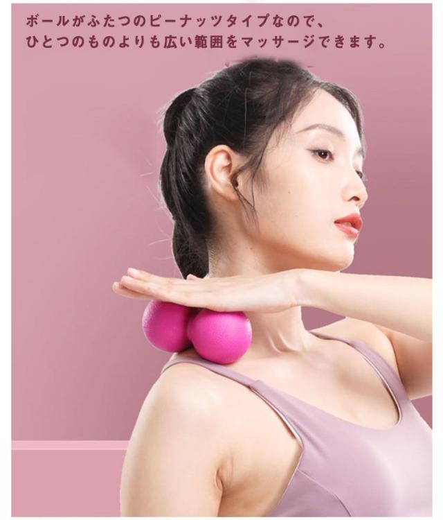 | 足裏やふくらはぎの筋肉の疲れをとる、テニスボールサイズで程よい硬さのボール 筋肉シェイプアップ、マッサージ、ツポ刺激、全身の筋肉にマッサージして、筋肉疲労感を緩和する ボールがふたつのピーナッツタイプなので、ひとつのものよりも広い範囲をマッサージできます。 左右対称の部位を同時に刺激できるので、短い時間で簡単にストレッチができます。 ほぐしたい部位にゆっくりと体重をかけていき、ピンポイントで刺激を与えて凝りをほぐすことができます。 硬さのあるタイプなので強い刺激が好みの方におすすめです。 気になる箇所に当てて、しっかり押してほぐします! コンパクトサイズなので手軽に持ち運べて、場所を選ばずセルフマッサージをサポートします! | |