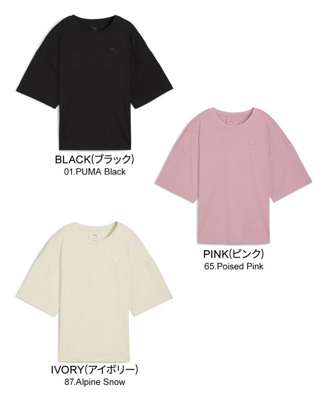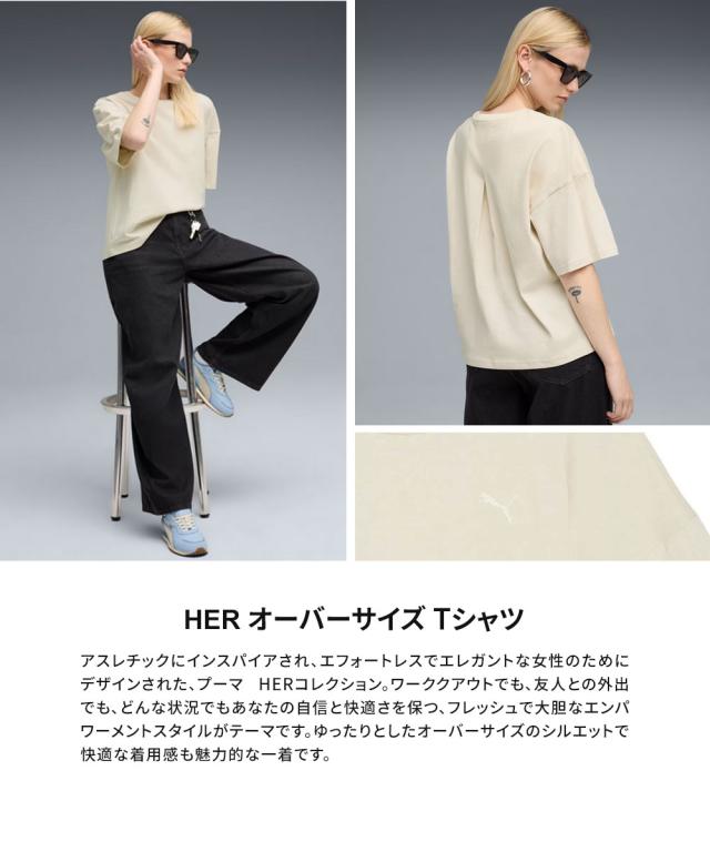 プーマ tシャツ レディース 半袖 ゆったり 綿100% HER オーバーサイズ 快適 涼しい おしゃれ ブランド シングルジャージー リブ クルーネック 黒 ブラック ピンク アイボリー PUMA アパレル トップス ウェア