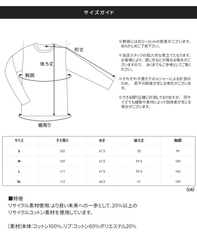 [素材]本体:コットン100%、リブ:コットン80%ポリエステル20%